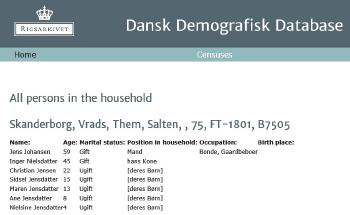 - [S384] The Danish National Archives; Census Records, Skanderborg, Vrads, Them, Salten, , 75, FT-1801, B7505.