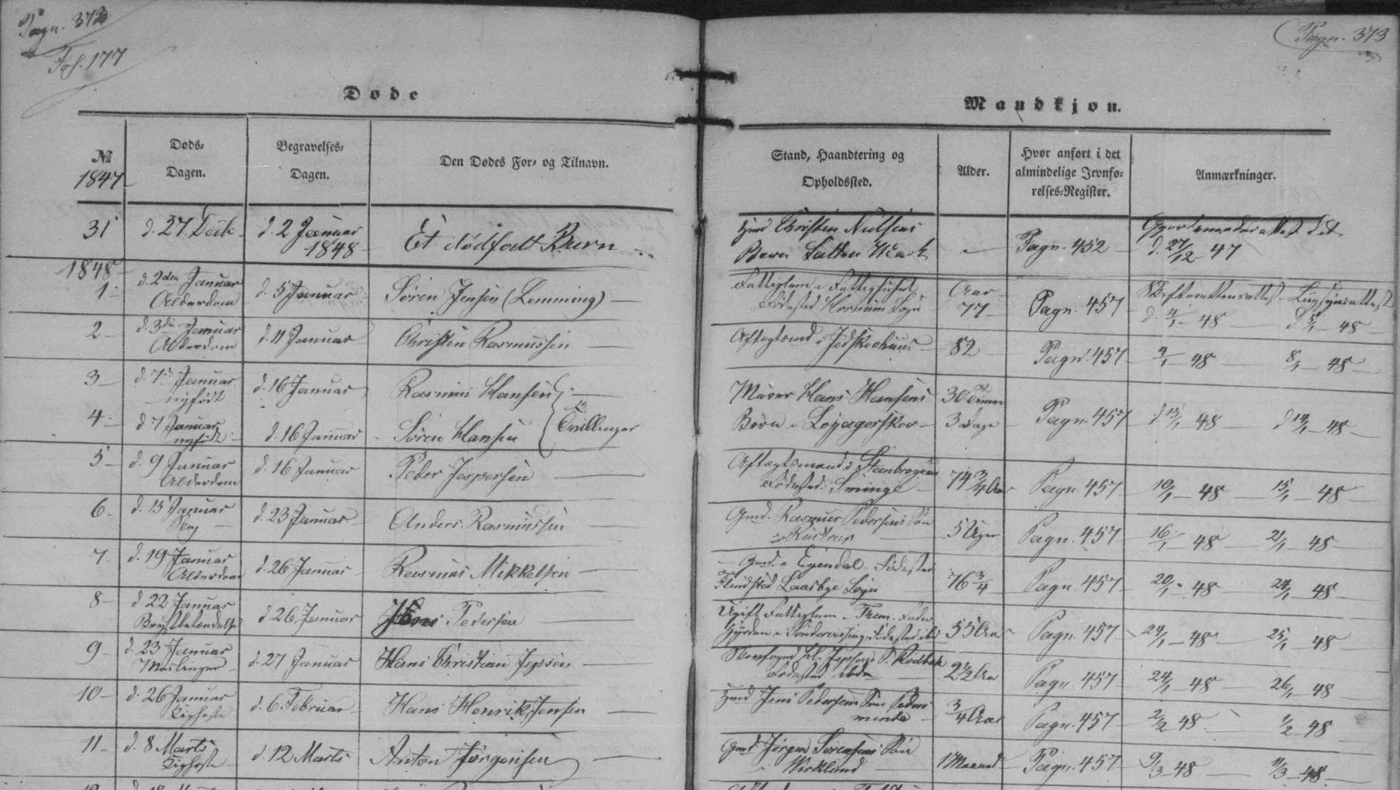 - [S383] The Danish National Archives; Church Records, Rasmus Mikkelsen death record - 26 Jan 1847 - Them Sogn, Vrads, Skanderborg, Denmark.