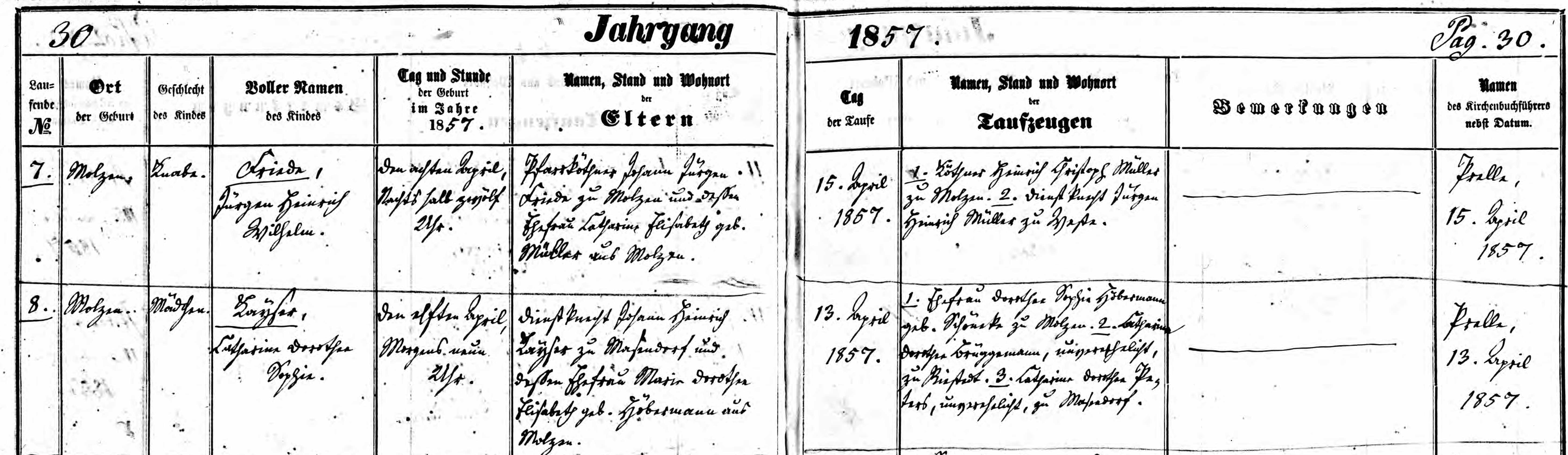 - [S407] Lutheran Church, German Lutheran Church Records 1500-1971, Image 187 of 525: Hannover Molzen Taufen, Heiraten, Tote u Konfirm 1733-1852.