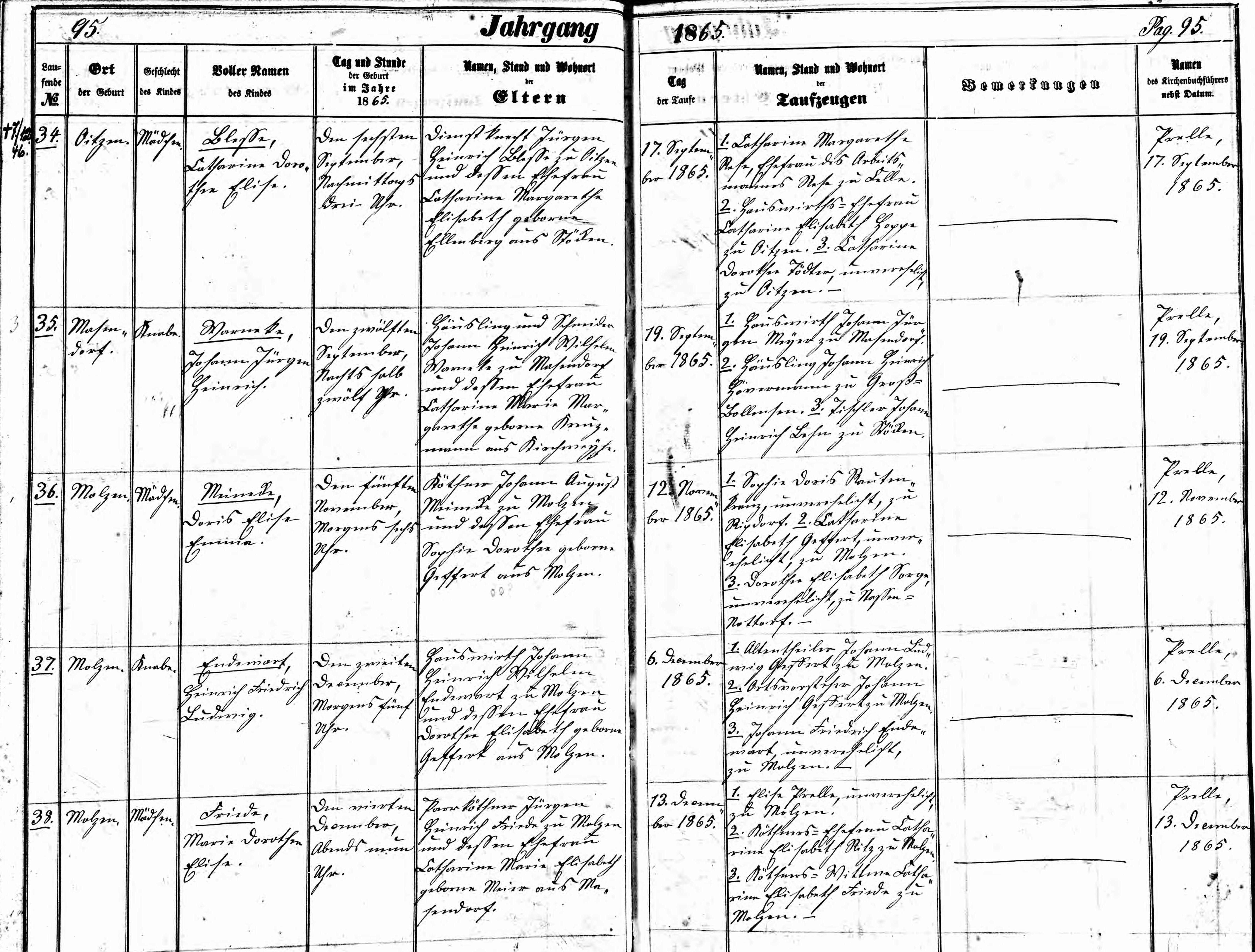 Hannover Molzen Taufen, Heiraten, Tote u Konfirm 1733-1852. Image 94 of 525. - [S407] Lutheran Church, German Lutheran Church Records 1500-1971, Film Number: 470785