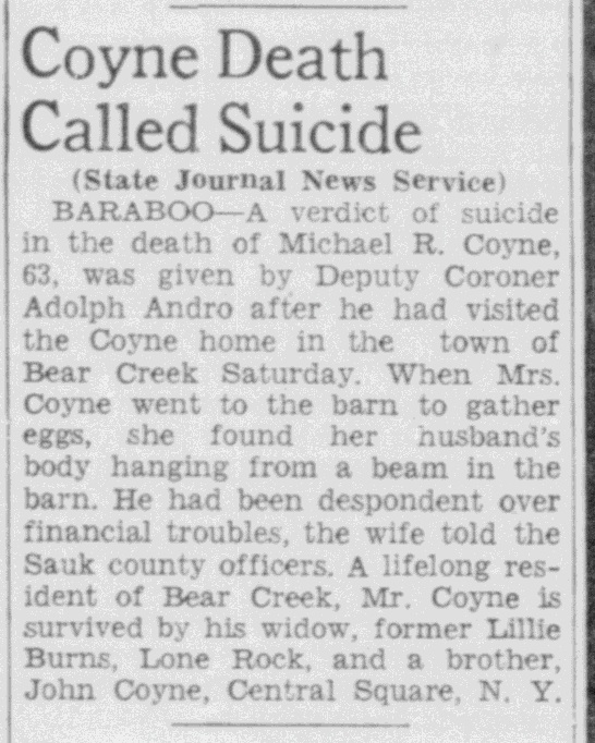 - [S243] U.S. Federal Census 1920 U.S. Federal Census, by Ancestry.com, Year: 1920; Census Place: Bear Creek, Sauk, Wisconsin; Roll: T625_2015; Page: 6B; Enumeration District: 160; Image: 19.