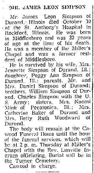 | Father* | Green Thomas Simpson b. 4 Dec 1874, d. 3 Jan 1944 |