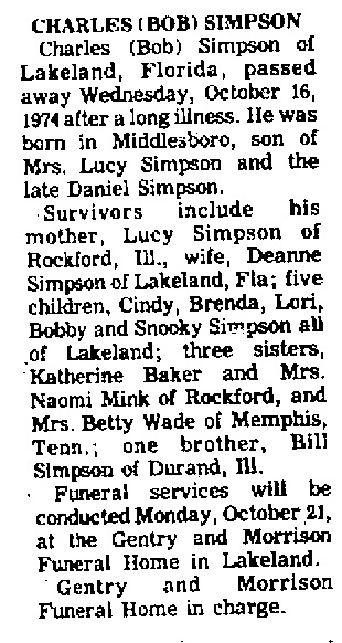 - Peggy Ann Simpson+ b. c 1945, d. 4 Dec 1969