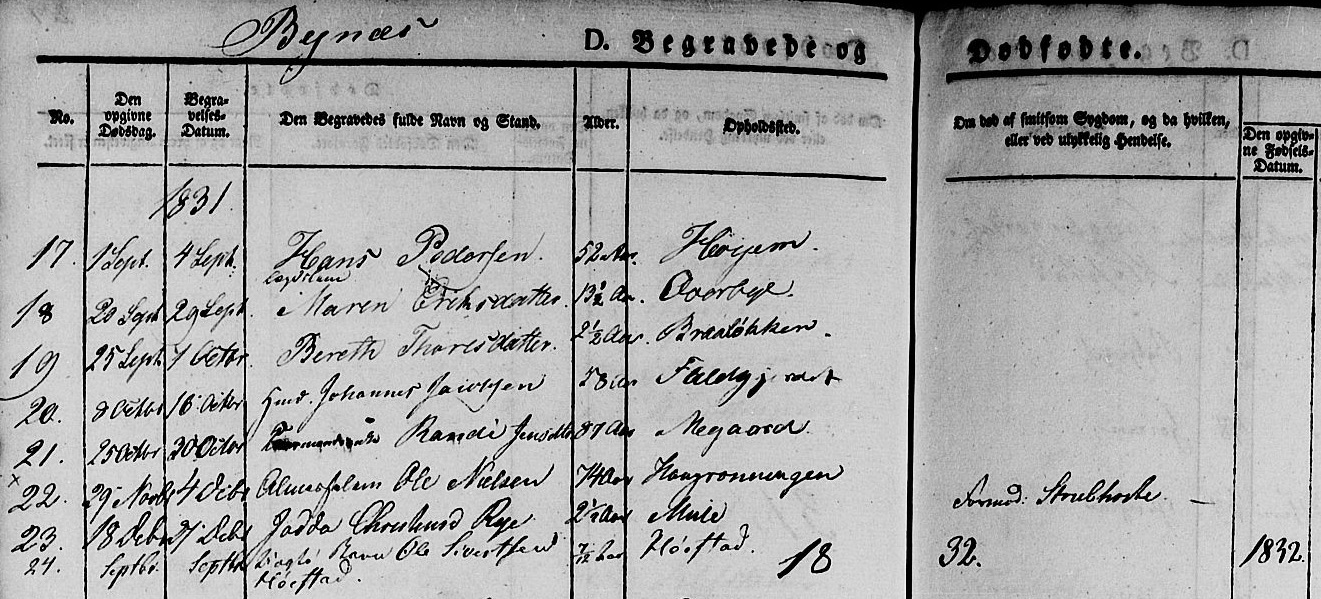 - Peder Sevaldsen Hoftad b. 1765, d. 15 Apr 1831