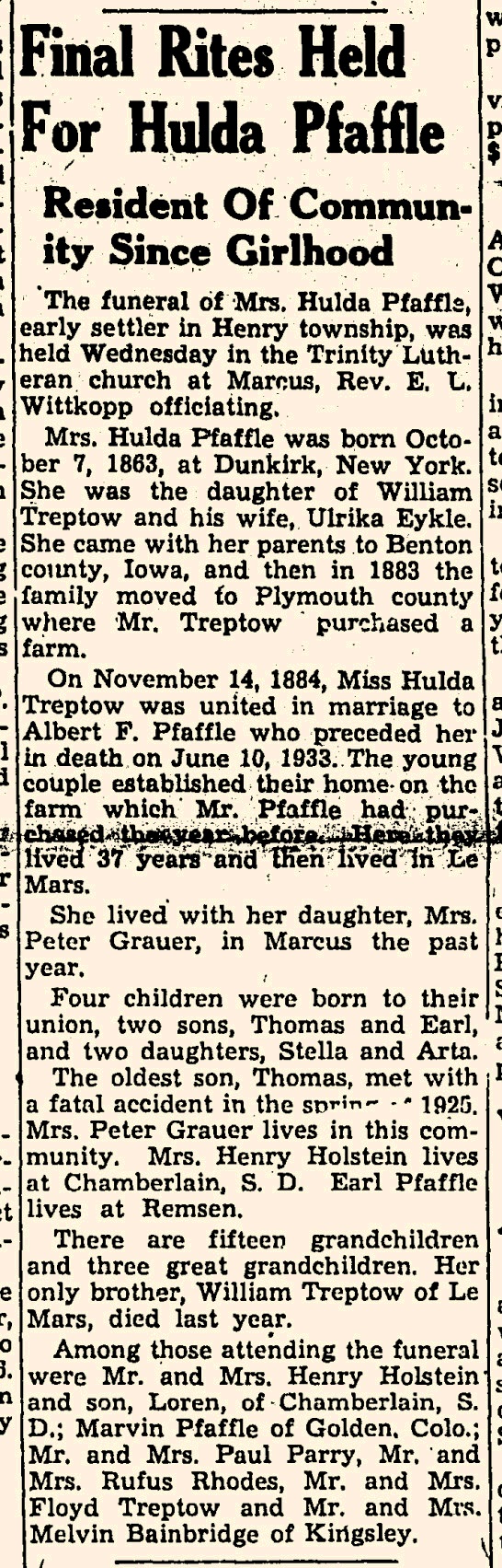Children of Hulda M. Treptow and Albert Fred Pfaffle