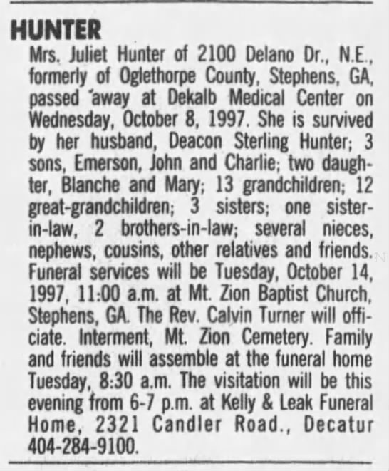 - Maconeal Hunter b. Aug 1893, d. 1977