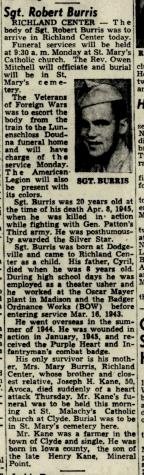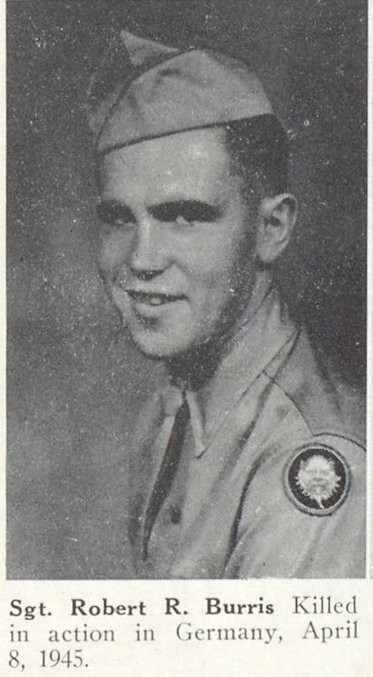 - Seargent Robert Burris b. 31 Jul 1924, d. 8 Apr 1948