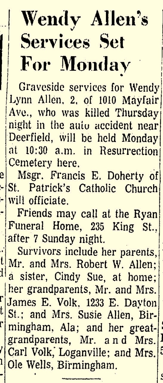 | Father* | Clifford Schultz b. c 1945, d. 15 Sep 1967 |