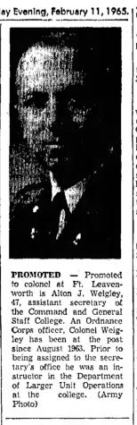| Birth | 15 August 1916 | Colonel Alton James Weigley was born on 15 August 1916. |