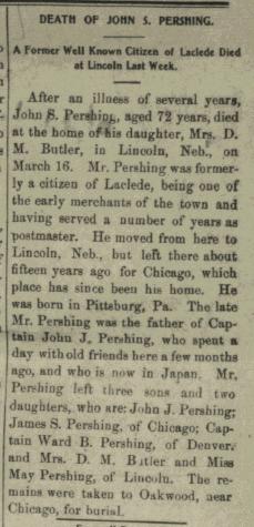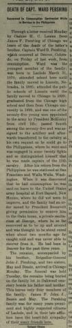 - Captain Ward Beecher Pershing b. 31 Mar 1874, d. 28 Aug 1909