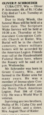 - Arthur Edward Schroeder+ b. 25 Jul 1903, d. 27 Nov 1990