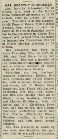 - Kathryn M. Schroeder+ b. 3 Sep 1888, d. 29 Aug 1958