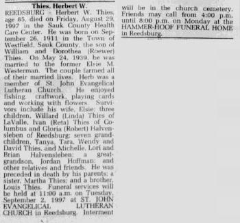 | Father* | Herbert W. Thies b. 26 Sep 1911, d. 29 Aug 1997 |