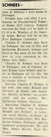 - Herbert Joseph Schnee b. 19 Nov 1940, d. 2 Mar 2005