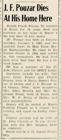 Child of Joseph Frank Pouzar and Anna Hejny