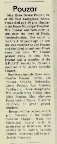 Child of Rosie Bessie Raztmajeroba and Joseph Frank Pouzar