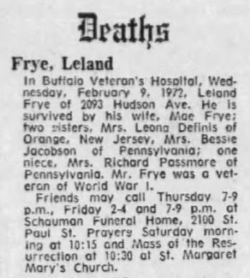 | Father* | Leeland Hause Frye b. 25 Apr 1896, d. 9 Feb 1972 |