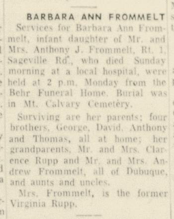 | Father* | Anthony J. Frommelt b. 17 Oct 1910, d. 16 Jan 1990 |