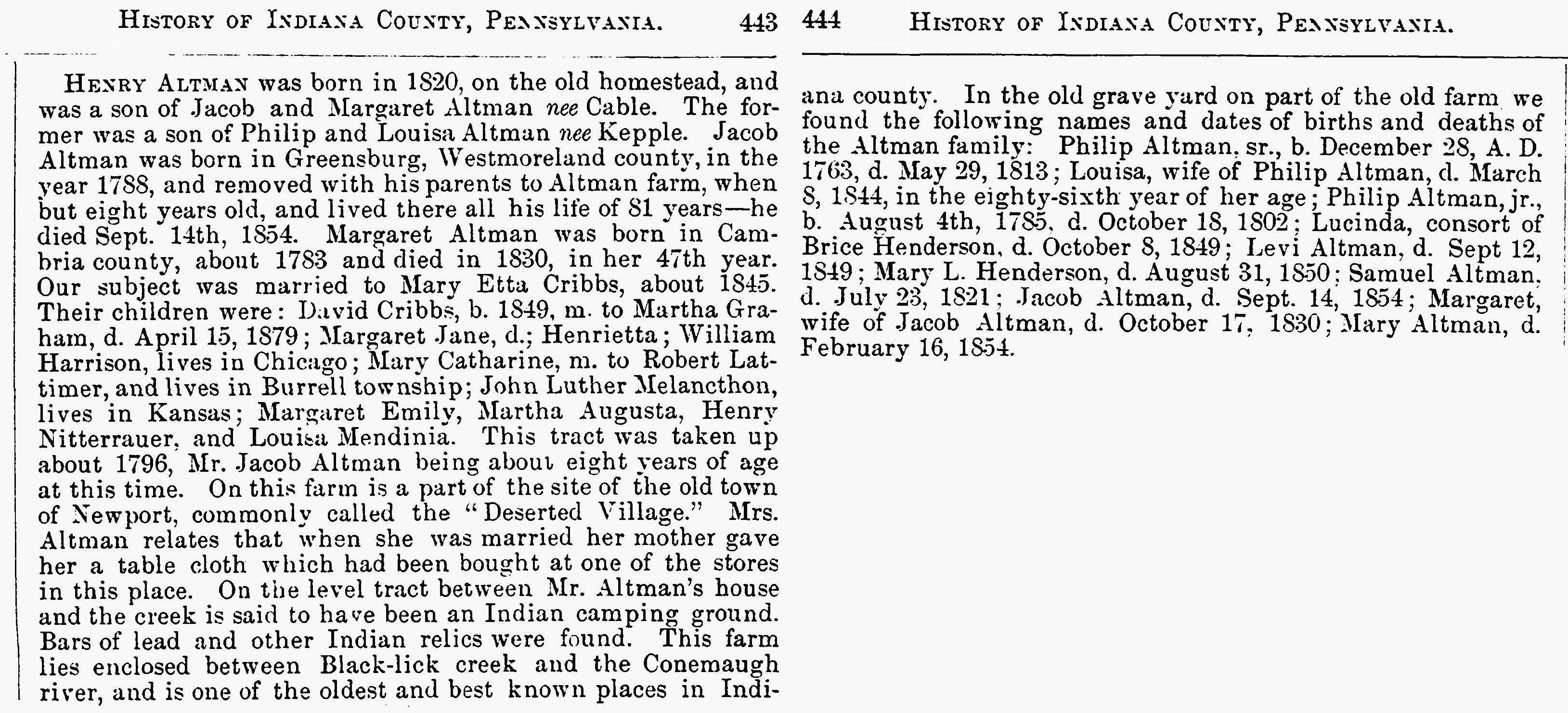 - David Cribbs Altman b. 1849, d. 15 Apr 1879