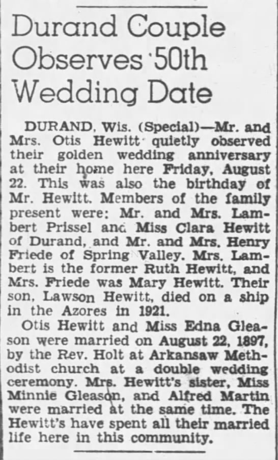 Child of Edna E. Gleason and Clarence Otis Hewitt