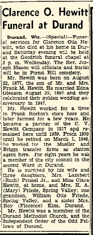 Child of Clarence Otis Hewitt and Edna E. Gleason
