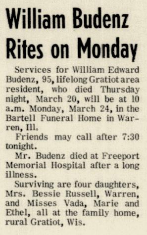 - Vada Kathryn Budenz b. 27 Feb 1904, d. 8 Aug 1994