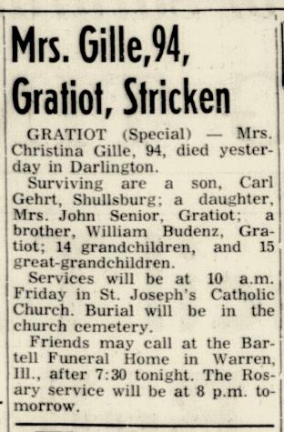 - Francis William Gehrt+ b. 11 Jan 1898, d. 15 Mar 1958