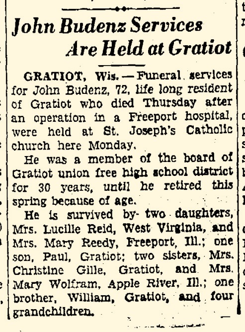 - Mary Elizabeth Budenz b. 1 Jun 1908, d. Apr 1976