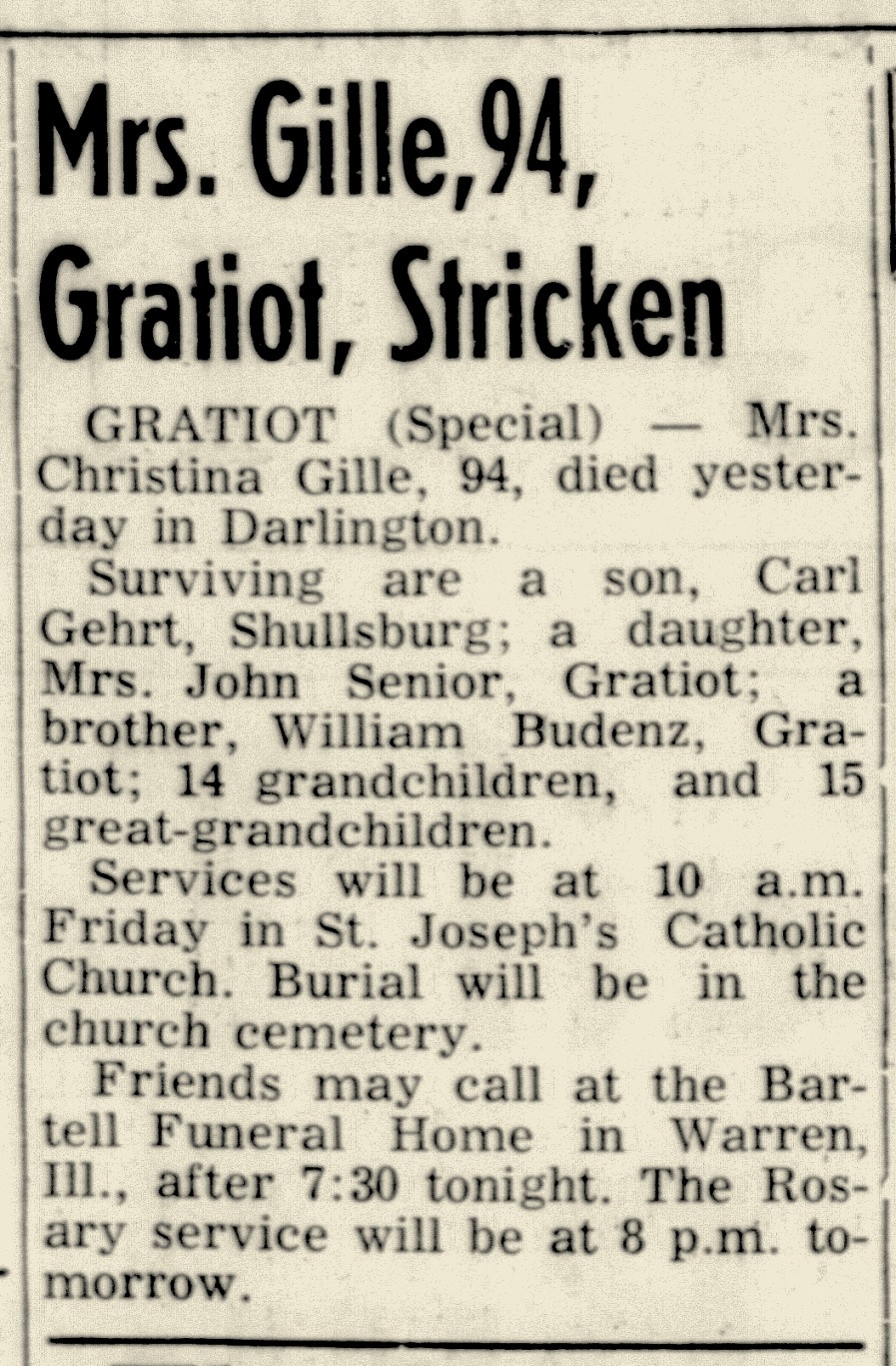 - Christina Budenz+ b. 12 Apr 1871, d. 20 May 1965