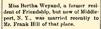 - Bertha C. Weyand b. Feb 1872, d. 1933