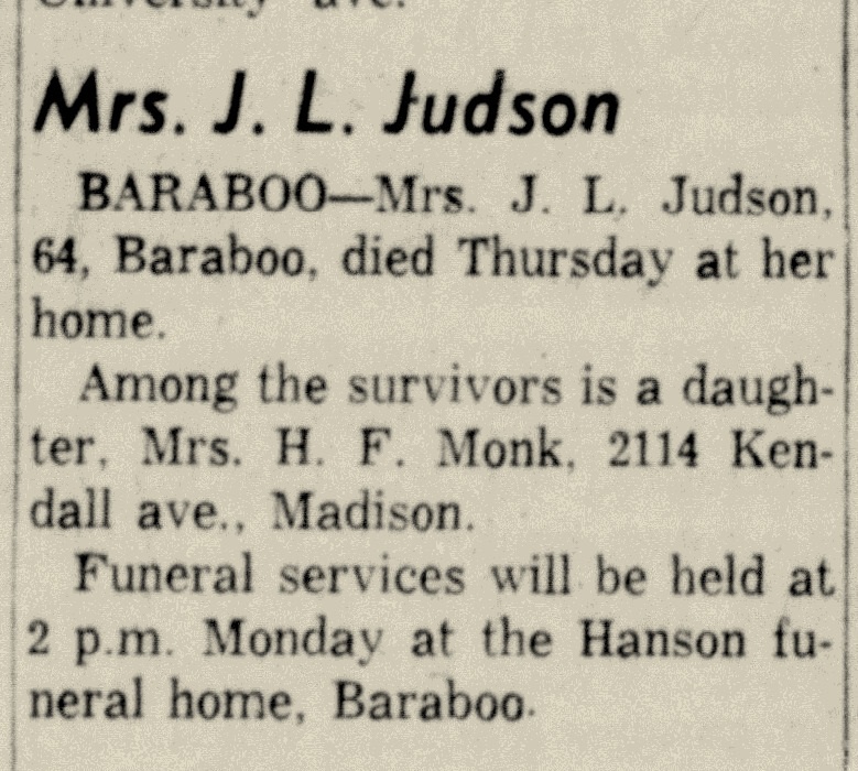 | Father* | James LeRoy Judson b. 2 May 1893, d. 7 Sep 1961 |
