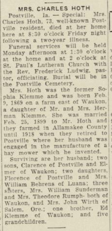 - Sophia Louisa Klemme b. 9 Feb 1869, d. 13 Nov 1942