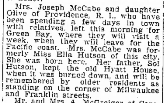 | Step-mother | Ella L. Hutson b. 5 Nov 1857, d. 5 Aug 1936 |