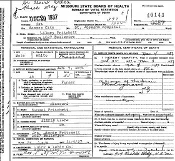 - Samuel T. Pritchett b. 12 Jun 1913, d. 31 May 1929