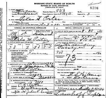 - Clarence Kelly Porter b. 7 Jun 1885, d. 9 Mar 1953