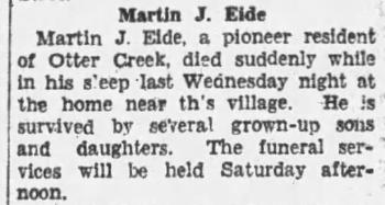| Father* | Martin Johnson Eide b. Aug 1859, d. 23 Nov 1932 |