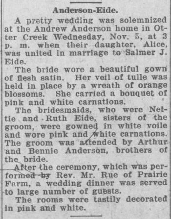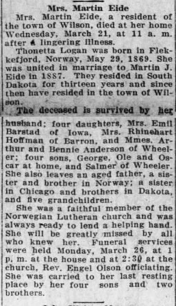 - Thonetta Marie Eide b. 6 Mar 1898, d. 19 Aug 1985