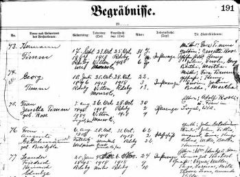 - Wilhelm August Jetschmann b. 4 Oct 1884, d. b 1889