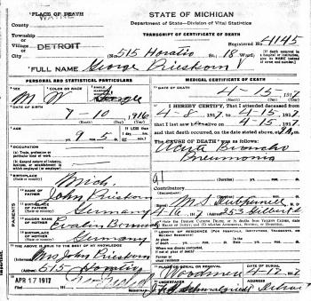 - George Prieskorn b. 10 Jul 1916, d. 15 Apr 1917