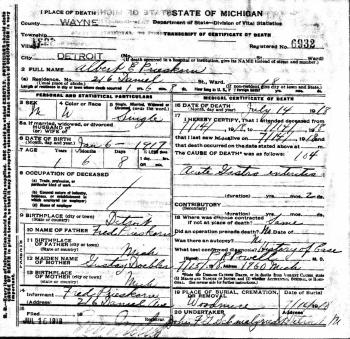 - [S245] U.S. Federal Census 1900 U.S. Federal Census, by Ancestry.com, Year: 1900; Census Place: Springwells, Wayne, Michigan; Page: 18; Enumeration District: 0200; FHL microfilm: 1240755.