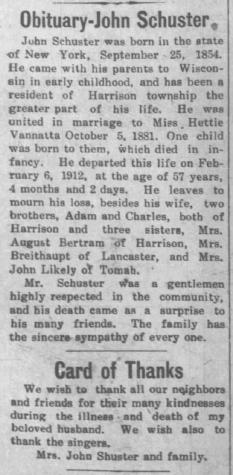 - Clara Mae Schuster+ b. Oct 1886, d. 8 Feb 1987
