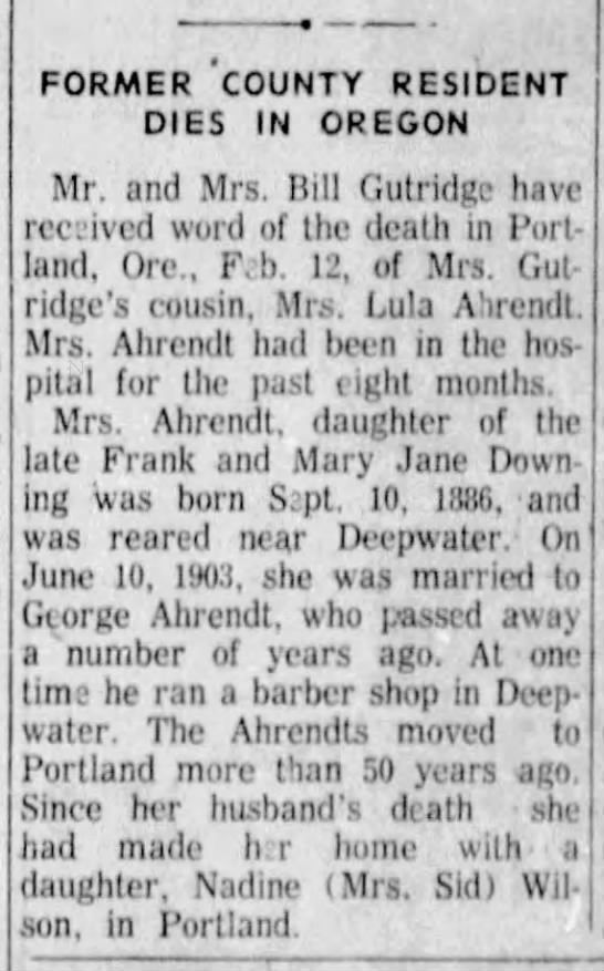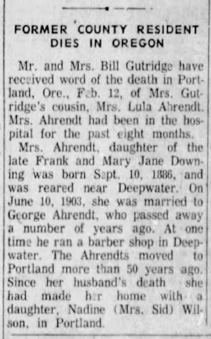 - [S373] U.S. Federal Census 1940 U.S. Federal Census, by Ancestry.com, Year: 1940; Census Place: Deepwater, Henry, Missouri; Roll: m-t0627-02111; Page: 3A; Enumeration District: 42-17.