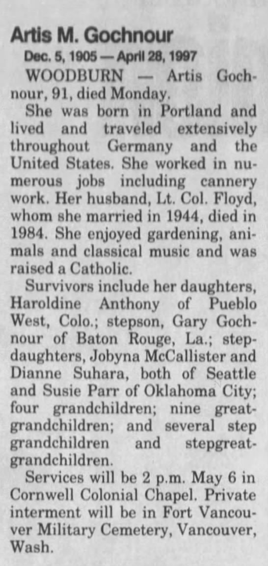 - Artis May Louden+ b. 5 Dec 1905, d. 28 Apr 1997