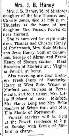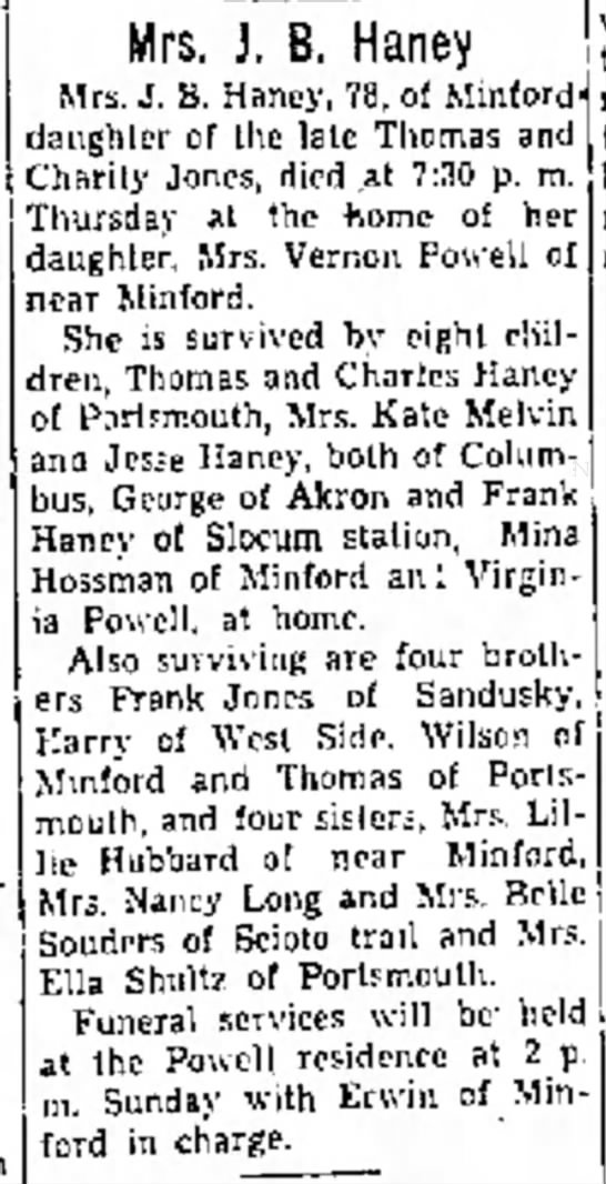 - Mary E. Haney b. 27 Mar 1899, d. 28 Nov 1985