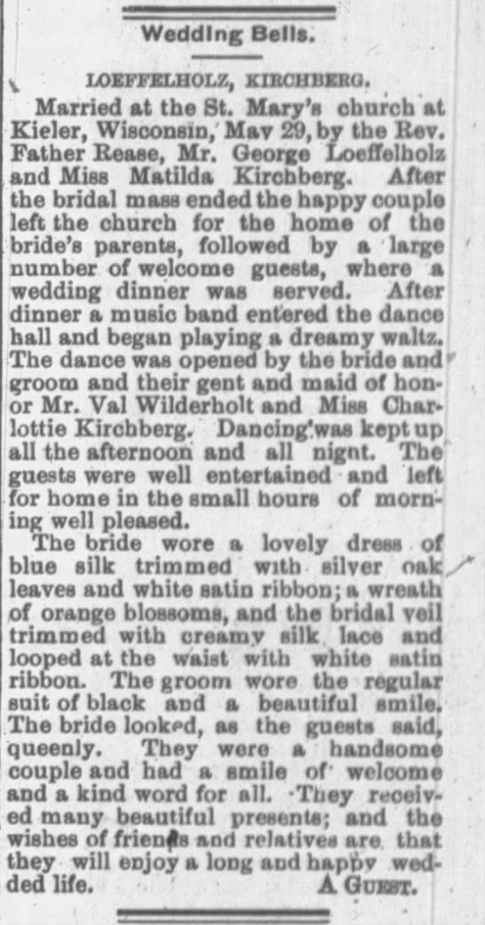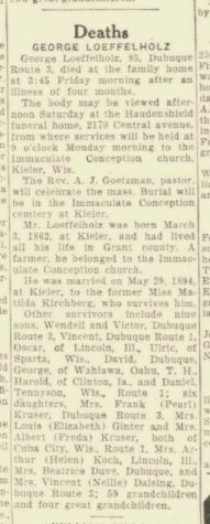 - Wendell Loeffelholz b. 20 Dec 1900, d. Dec 1969
