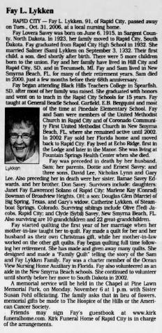 - Janet Fay Lykken+ b. 20 Aug 1934, d. 3 Dec 2006