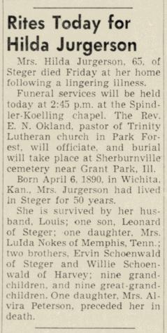 - Elvira Sylvia Jurgerson b. 22 Feb 1906, d. 10 May 1948