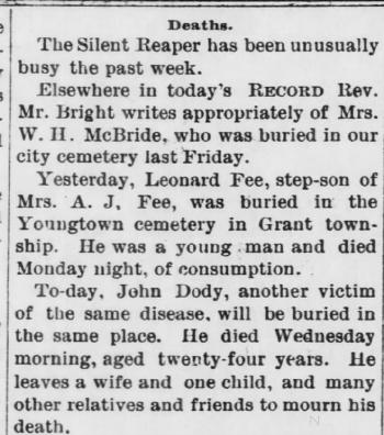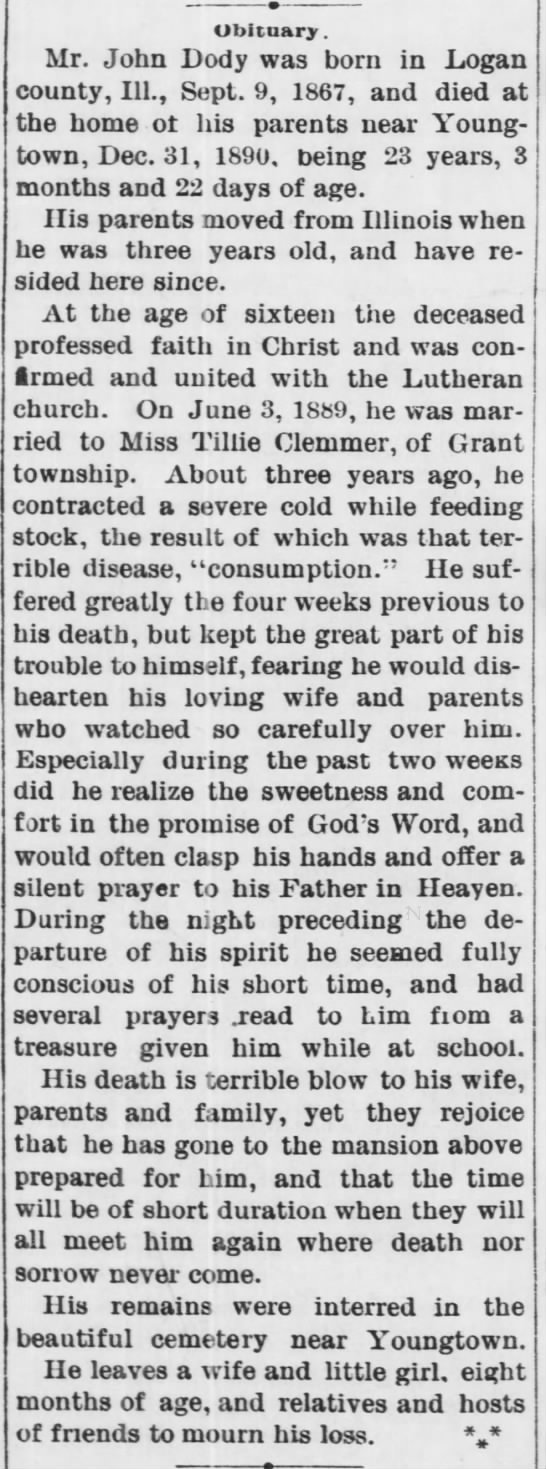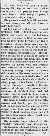 | Father* | John H. Dody b. 9 Sep 1867, d. 31 Dec 1890 |