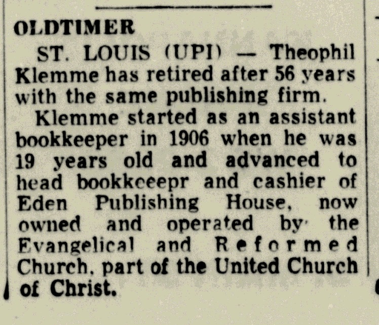 - Theophil Klemme+ b. 1 Oct 1887, d. 7 Jul 1969