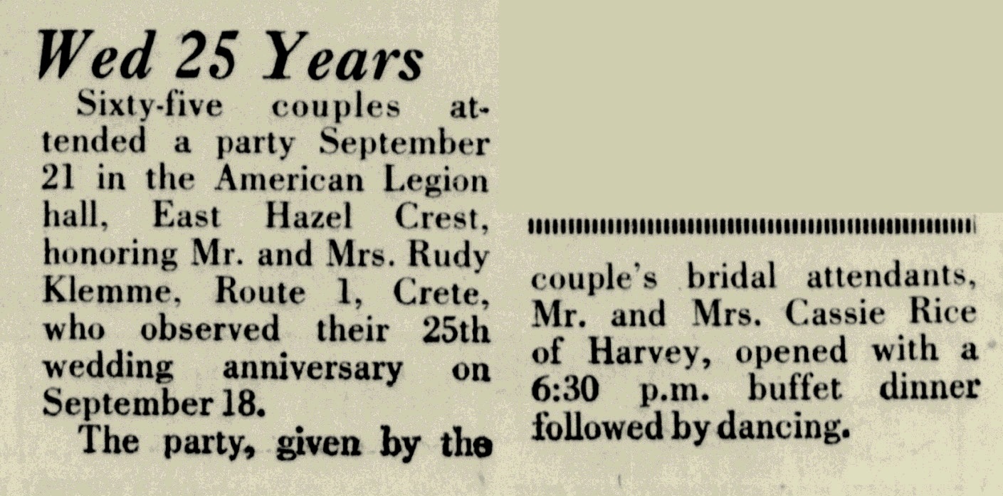 - [S373] U.S. Federal Census 1940 U.S. Federal Census, by Ancestry.com, Year: 1940; Census Place: Beecher, Will, Illinois; Roll: T627_909; Page: 6B; Enumeration District: 99-107.